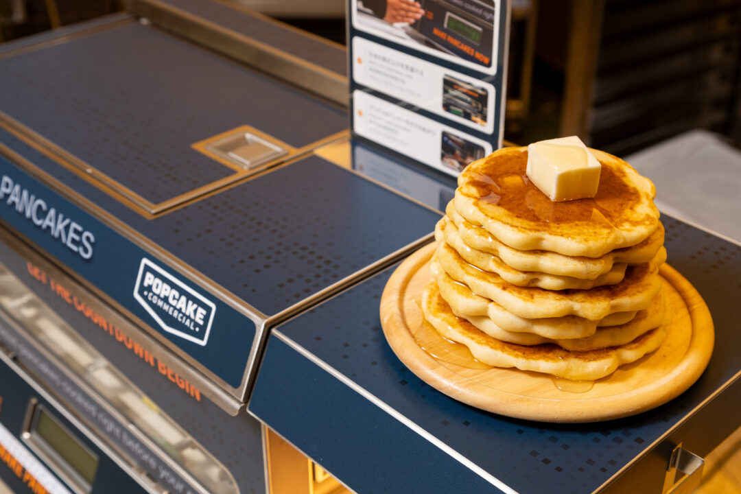 パンケーキマシンに手をかざすと30秒で1枚焼きあがり!